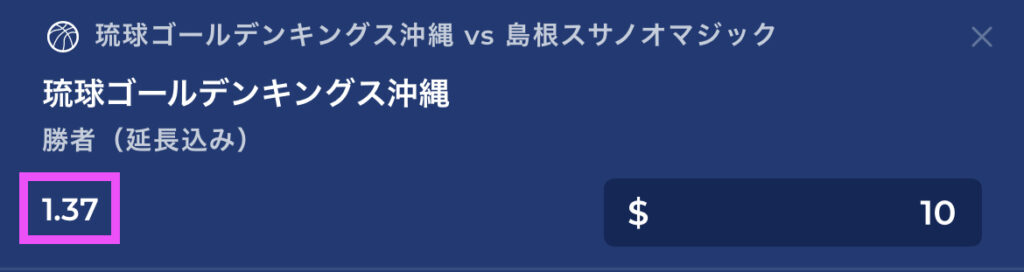 例えば、B1リーグの琉球vs島根の試合結果を予想したいとき、「琉球が勝つな」と予想してもオッズはそんなに高くありません。