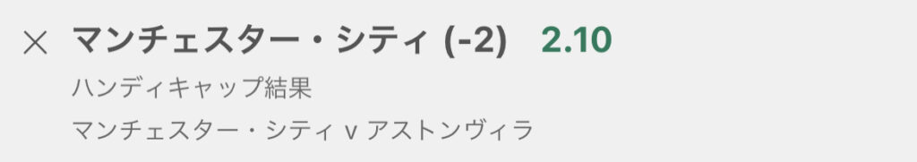 そのような場合に、シティに2点分のハンデをつけることで、シティは0-2の状態から試合を開始することになります。つまりハンデをつけたこの予想が的中になるにはシティが3点差以上で勝つ必要があるので、オッズも高くなります。