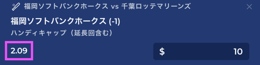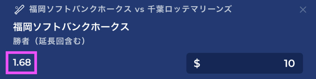 例えば、ソフトバンクvsロッテの試合結果を予想したいとき、「ソフトバンクが勝つな」と予想してもオッズはそんなに高くありません。