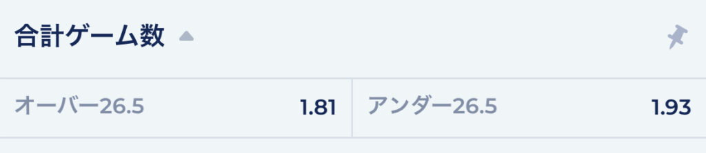 合計で26ゲーム以下だと思ったらアンダー26.5、27ゲーム以上になると思ったらオーバー26.5に賭けます。