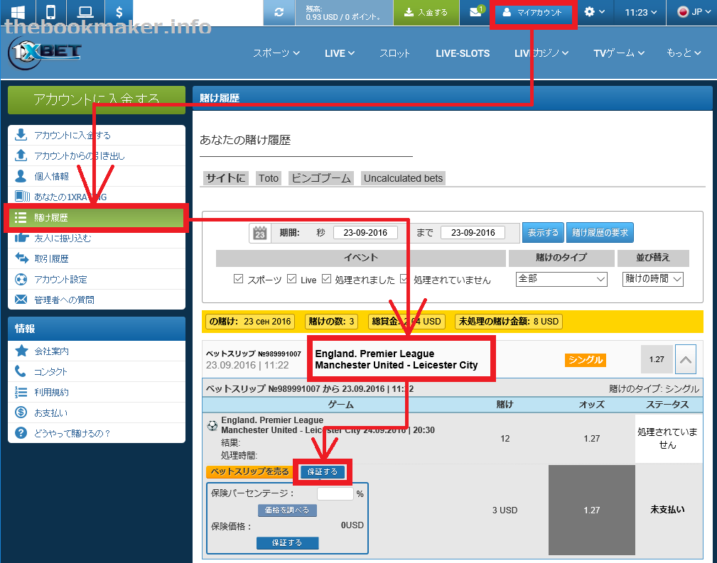 賭け履歴を見ても ベットスリップを売る 保証する って二つボタンがあります。