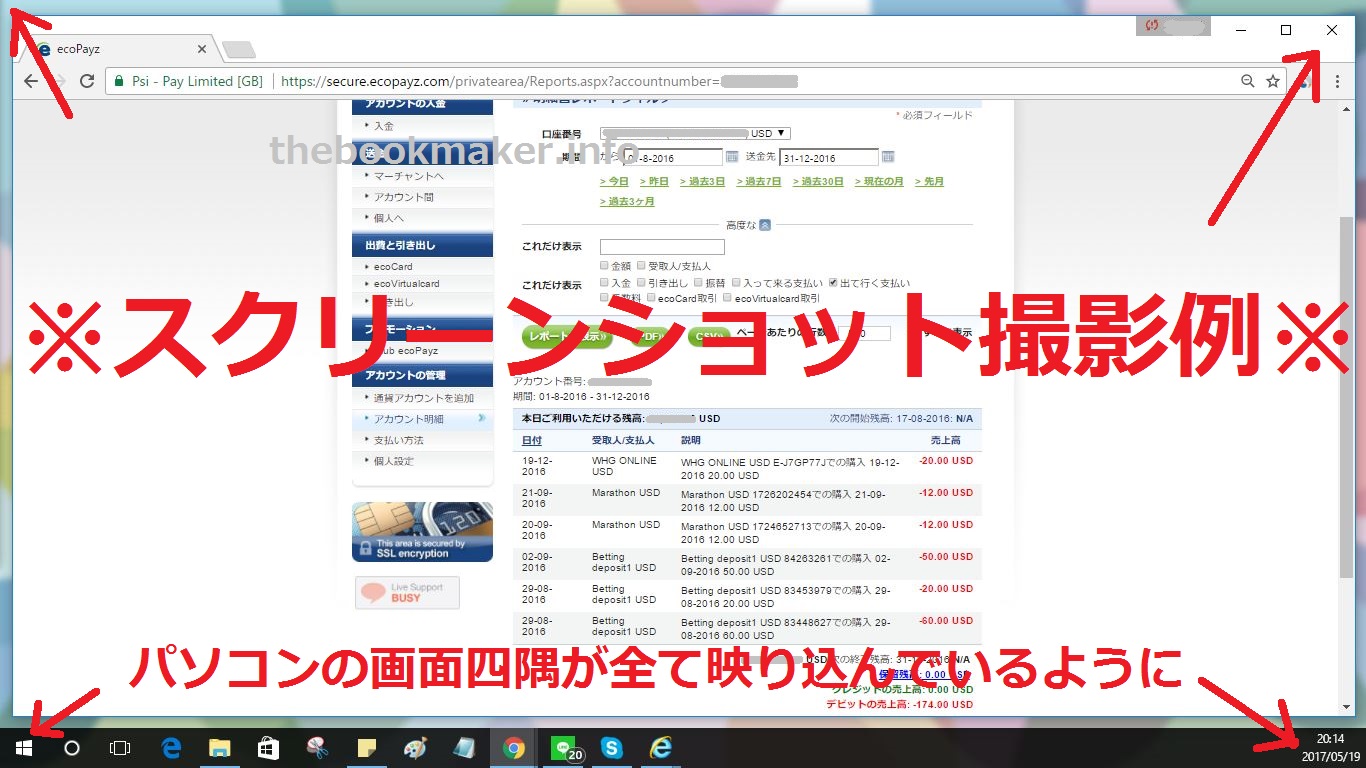 ②取引に使用した口座の画面のスクリーンショット (全て)