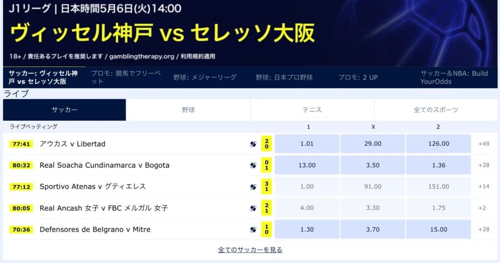 また、ベット額に応じたキャッシュバックや、予想イベント・入金不要ボーナスなども充実。中でも人気の「6試合スコア予想チャレンジ」は、入金不要で毎週約13万円が当たるチャンスとして話題を集めています。