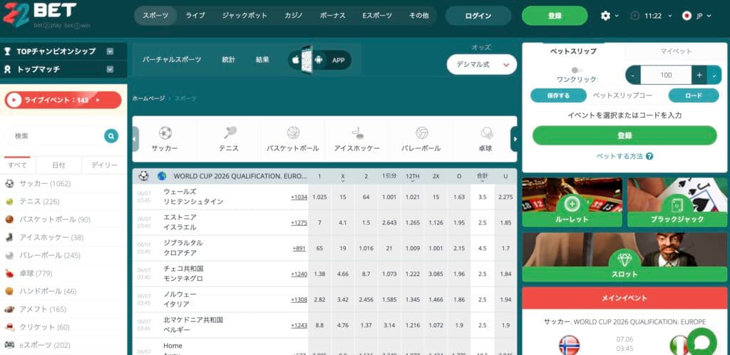 1XBET(ワンバイベット)は、世界最大級のブックメーカーの一つであり、圧倒的な対応リーグ数とオッズ提供量で知られています。サッカー、テニス、バスケットボールなどのメジャースポーツはもちろん、囲碁やハンドボール、さらには政治や気象イベントまで対象にするなど、他社を圧倒するほどの多彩なベッティングマーケットを誇ります。