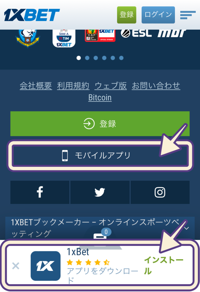 次に、実際に1XBETアプリをダウンロード、インストールしましょう。