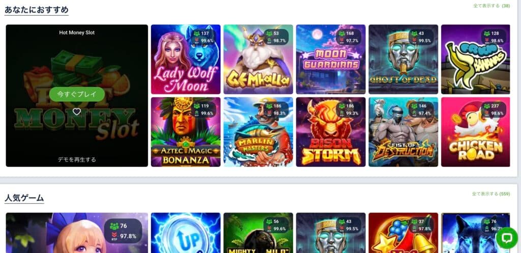 - クラッシュゲーム/インスタントゲーム:今人気の爆発型ゲーム(Aviatorなど)もカバー