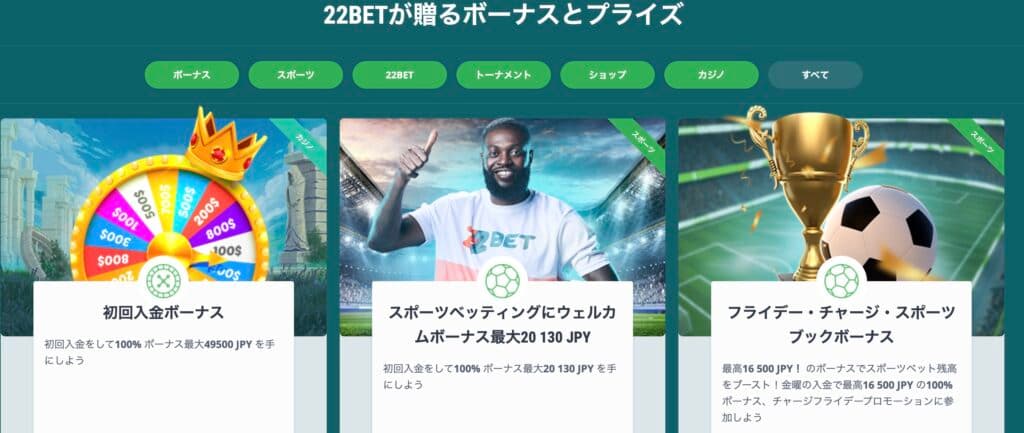 22bet(22ベット)のボーナス|入金ボーナスと豊富なキャンペーンが魅力!
