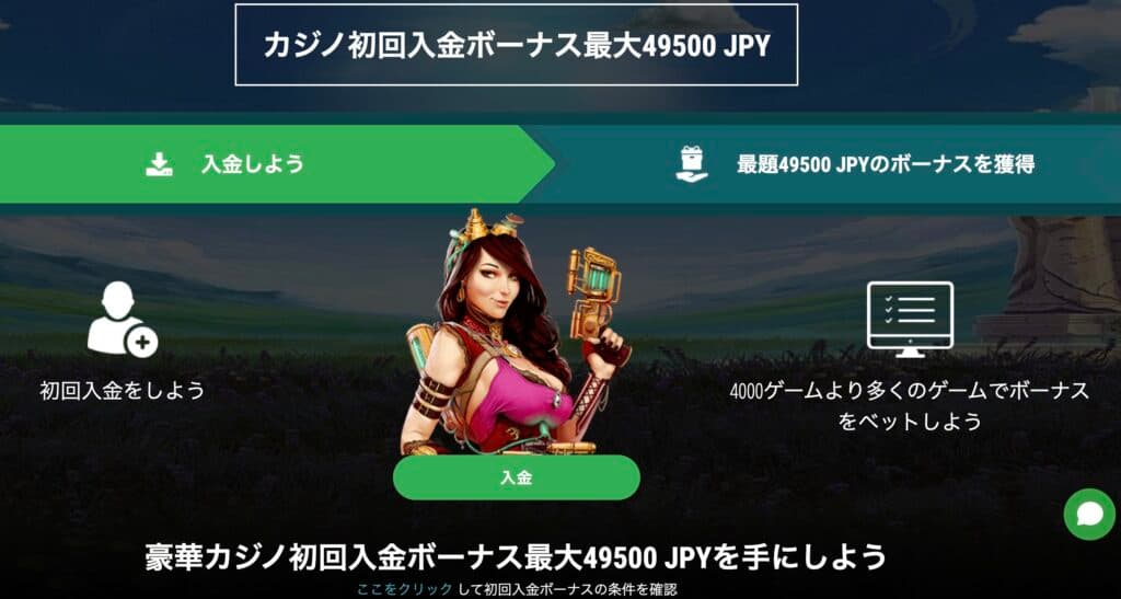 カジノ向けには、最大49,500円までの100%入金ボーナスが提供されています。スロットなどの対象ゲームで利用でき、条件を満たすことでボーナス資金を出金可能にできます。