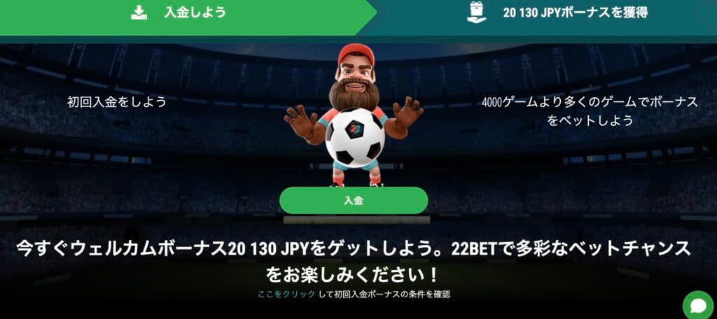 22BET(22ベット)の初回入金ウェルカムボーナス