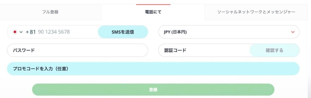 「できるだけ早くアカウントを作りたい」という方におすすめなのが、電話番号認証を利用した登録方法です。フル登録と比べて入力項目が圧倒的に少なく、最短1分でアカウント作成が完了するのが特徴です。