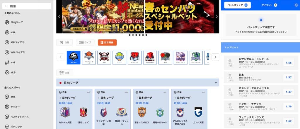 そんな中、BeeBet日本でのマーケットに力を入れており、日本で人気のスポーツに多くオッズを提供しています。