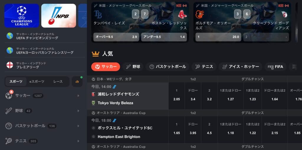 ただし、eスポーツや格闘技、特殊ベットのようなニッチ領域の取り扱いは控えめで、あくまで「定番の試合に賭けたい人」向けの構成といえるでしょう。