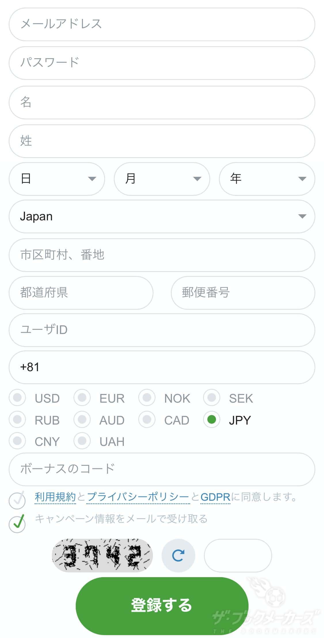 | ボーナス コード ※ボーナスコードがないものはコード不要 | ー | thebookmaker | tbs3000free | ー | ー | tbsfree | ー | ー | ー | bonsbettry | thebook ramenbook | tbs10 | bookted free10tbs | ー | JP100 | SPORT |