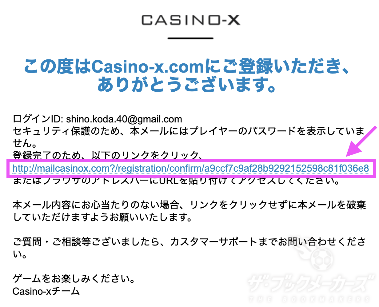 登録が完了したらサポート(ja_support@casino-x.com)に以下のメールを送ってみてください。