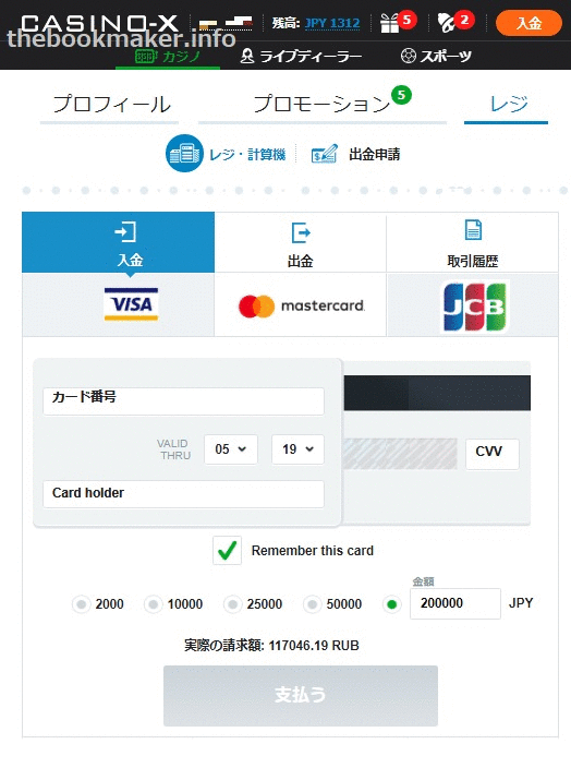 カジノエックスではクレジットカード入金時に別の通貨に両替されて入金されてしまうため、たとえカジノエックスの日本円アカウントに日本のクレジットカードから入金しても、別通貨に両替されて入金されます。