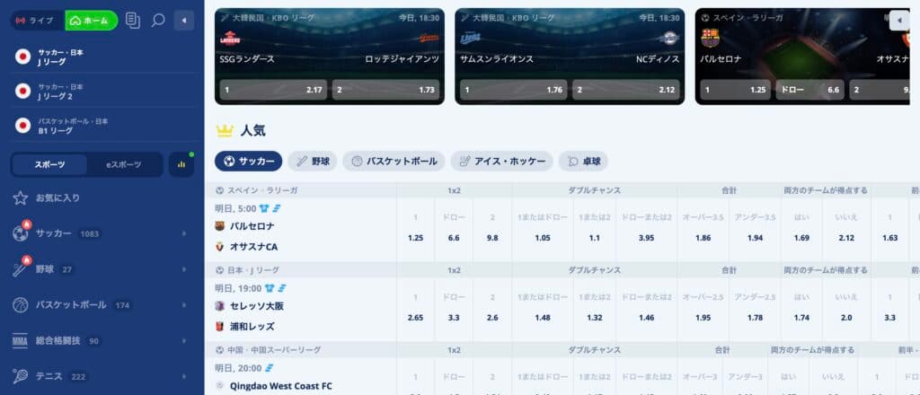 マーケットの豊富さは魅力的なので、幅広い競技にベットしたい人にとっては候補の一つになりますが、オッズ重視の人は慎重な見極めが必要です。