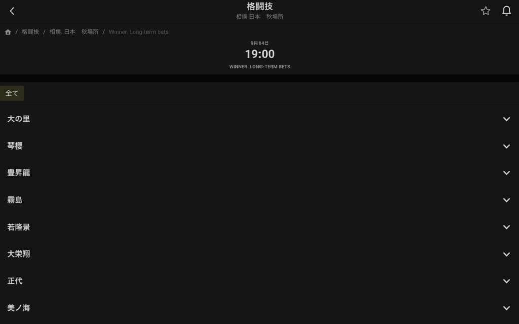 相撲やRizinなど日本向けの競技に対応しているのは大きな魅力です。スポーツの種類やベットできる項目も多く、他社に比べても選択肢が圧倒的に豊富だと感じます。