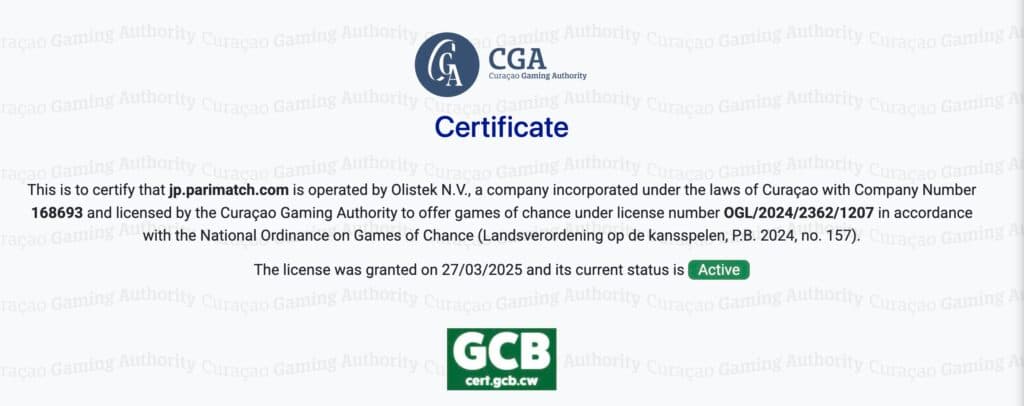 パリマッチはキュラソー政府のライセンスで運営されており、海外合法のブックメーカーです。