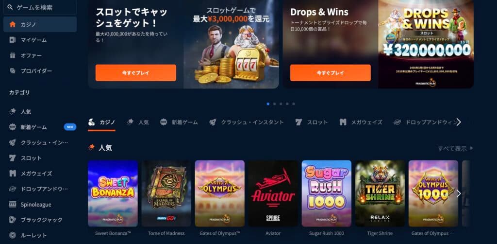 余計な目移りをせず、自分の得意ジャンルに集中しやすい設計になっています。また、派手な新作よりも実績のある安定型タイトルが多いため、カジノ初心者でも安心してプレイ可能。数の多さではなく、質で勝負するカジノと言えるでしょう。