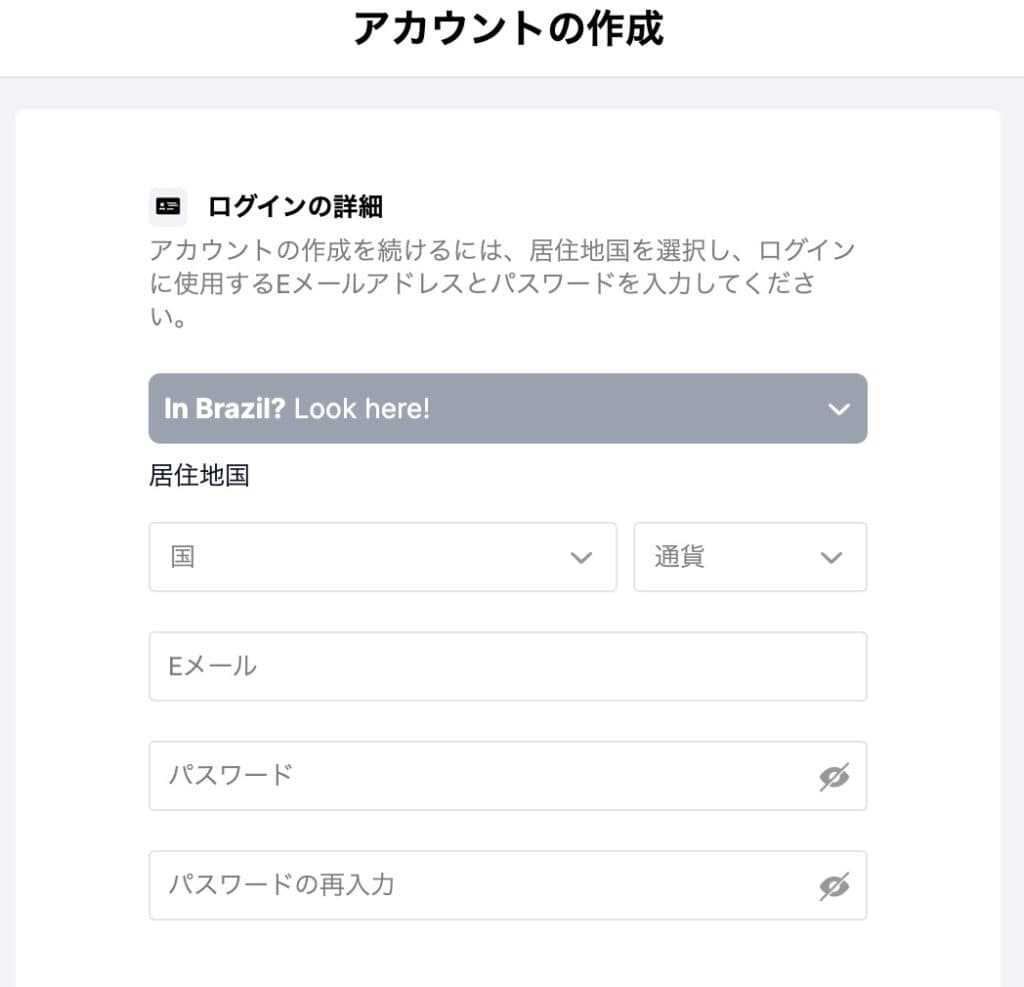 - 居住国、メールアドレス、パスワード(自分で決定)を入力