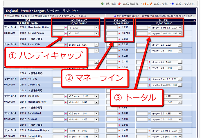次にそれぞれの賭けの種類について知って下さい