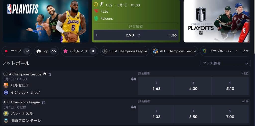 Whale.ioは、控除率(=ブックメーカー側の取り分)が他社に比べて低く設定されているとされ、特に人気の高いフットボールやeスポーツ市場では、高オッズでの提供が目立ちます。
