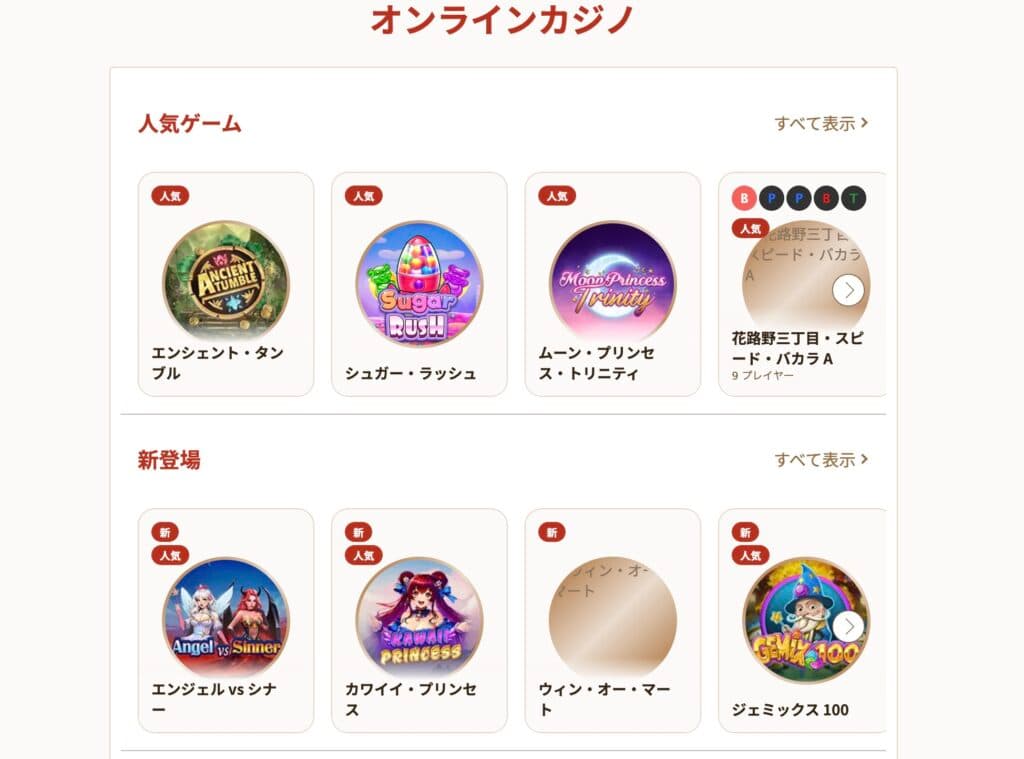 遊雅堂のカジノセクションは、日本市場向けに細かくローカライズされており、初めてオンラインカジノに触れるユーザーでも安心して楽しめる環境が整っています。世界的に有名なプロバイダーによる高品質なスロットゲームを筆頭に、テーブルゲーム、ライブカジノまで幅広いジャンルを網羅。