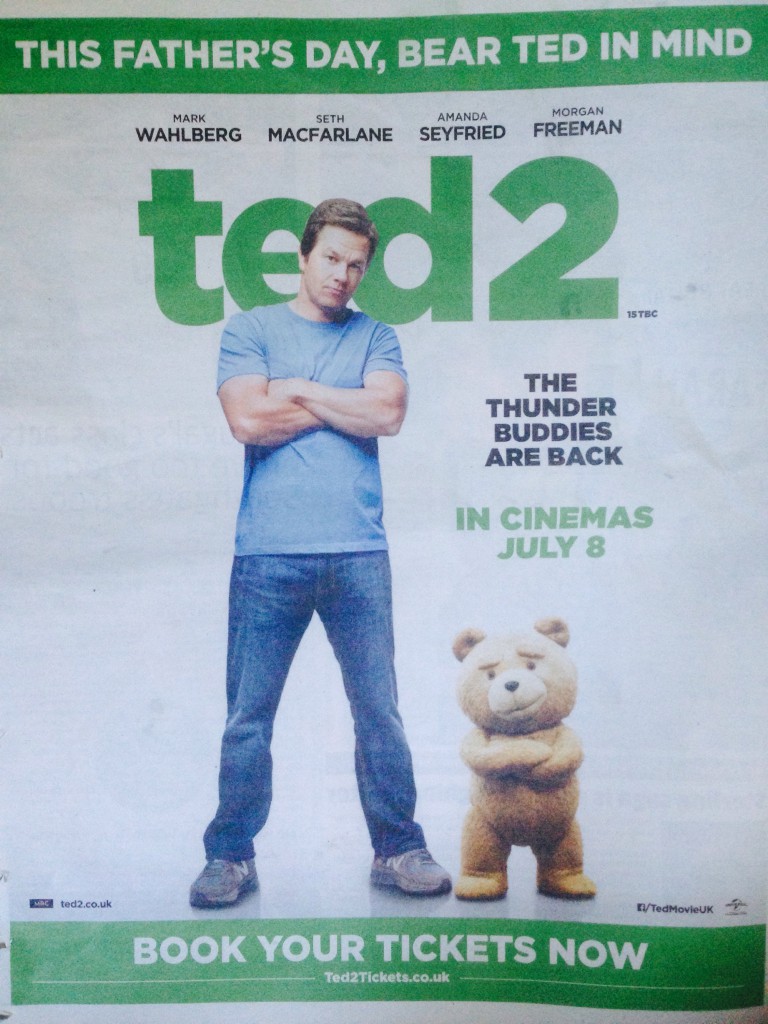 こんにちは!! ロンドンから今日も相変わらずの妹です!! 今日の新聞にはあまりサッカー関連の話題はなく。。。。 それよりとって大きくTed2!!!!!!! 私この映画好きですわ〜!早く見たい!w ...