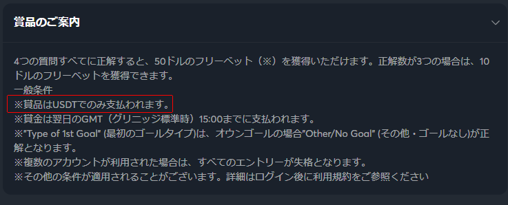 スポーツベットIOの4-3フリーでも景品がUSDTという仮想通貨で進呈されるようになっています。