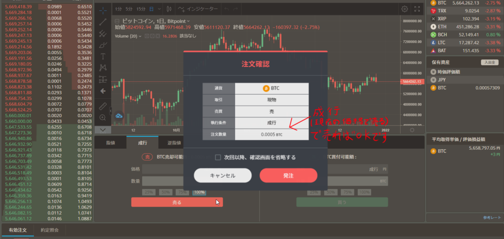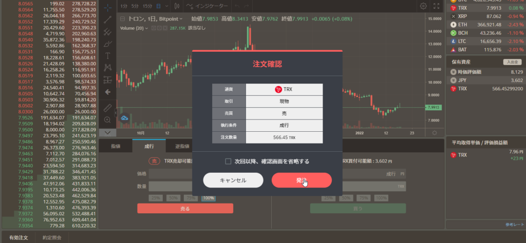 トロンを取引所に送る事が出来れば、後はそれを売って日本円に変えれば終わりです。