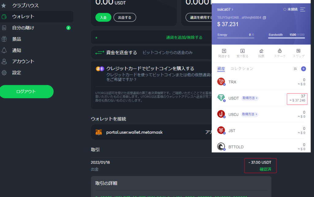 現在37USDTの残高があります(約4000円)