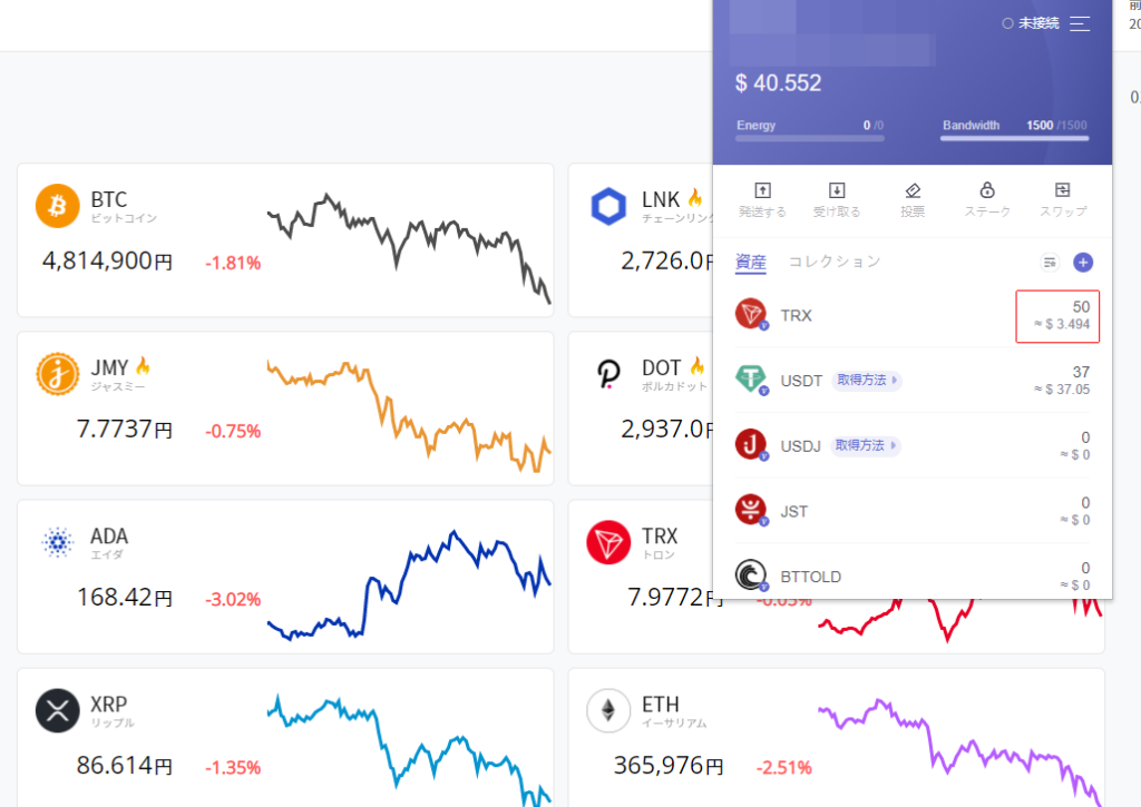 USDTをトロンリンクウォレットに送って、DEXでトロンにして国内の取引所に送って売る