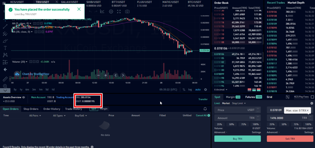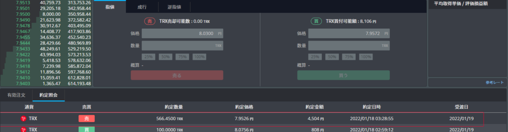 無事にUSDTを受け取ったら売買してトロンに変えます。