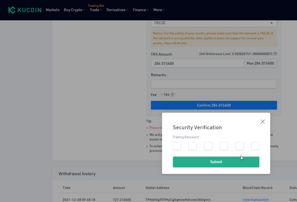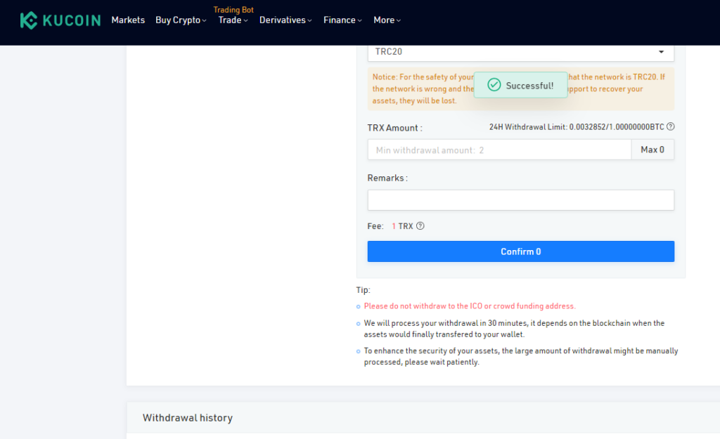 USDTをトロンに変える事が出来たら、後はBTCの時と同じように取引所に送って売ればOKです。