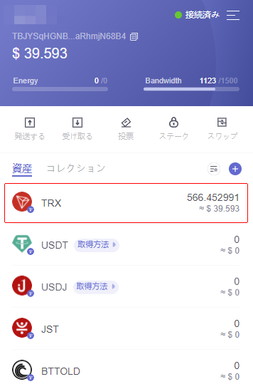 では実際に先ほどの37USDTをトロンに変えてみます。