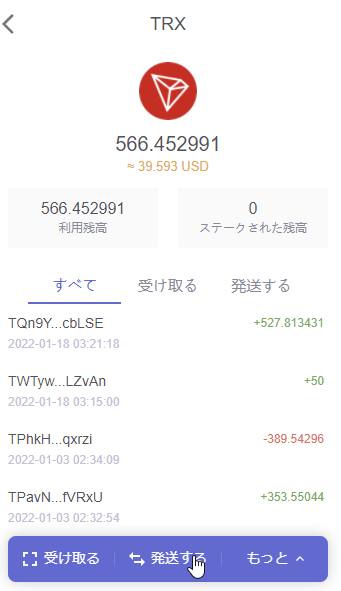 この際に手数料として11トロン(100円程)かかるので、その為に先ほどの取引所からトロン送金が必要になります。