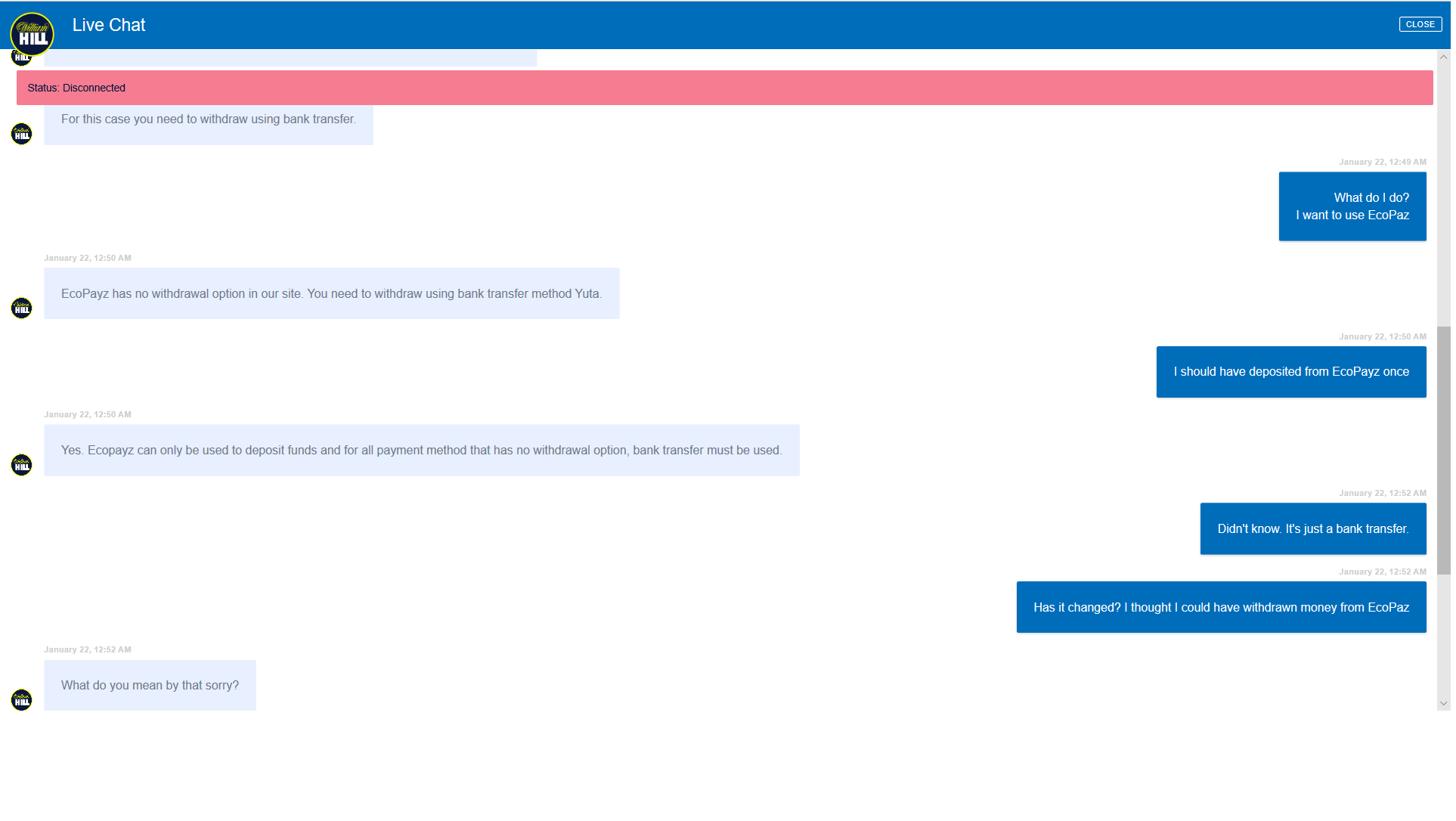そのスタッフが言うにはセキュリティの強化のため最も直近の入金方法がエコペイズでなければならないらしく、