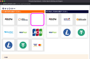 pinnnacle BTC 入金が使えない? → アジアンビューだと表示されない