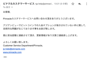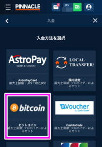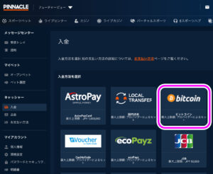 PINNACLE仮想通貨入金 pinnnacle BTC 入金が使えない? → アジアンビューだと表示されない85 9 05月24日 15:46