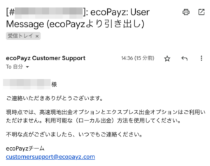 ecoPayz出金銀行振込 エクスプレスローカル送金が着金しない → 着金済み 解決済169 10 03月10日 13:05