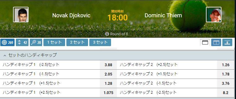 選択ベット 「ジョコビッチ ハンデ-1.5」