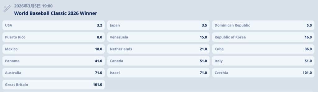 WBCのオッズの見方・賭け方は?