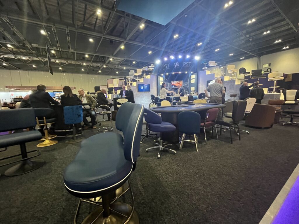 一方でランドカジノ向けの家具を紹介するブースもあり、オンラインが主流になる中でもこういった需要はまだまだあるんだなと感じました。