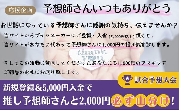 初回登録&入金で、推し予想師さんと2,000円のアマギフ山分けできます!