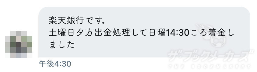楽天銀行で出金した場合は、週末中に着金したとのご報告をいただいています!(2021/5/16)