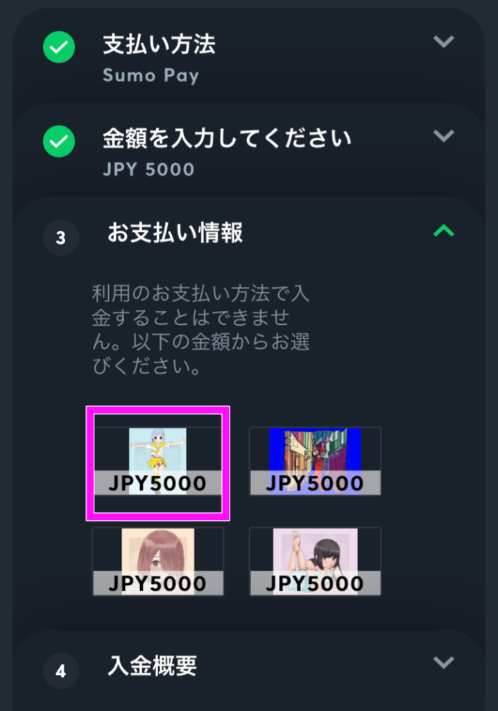 ゴールドに輝く【現金】(SUMO PAY)を押します。