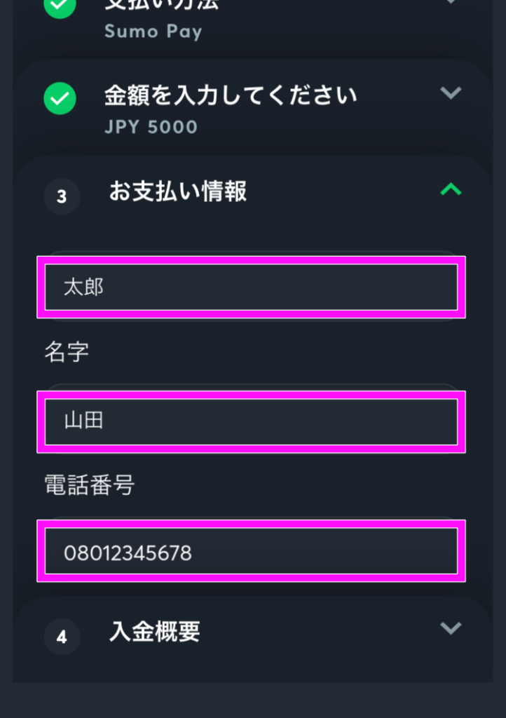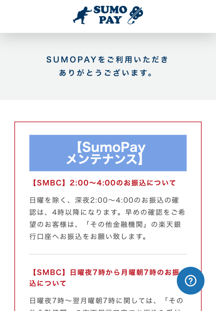 ユーザー名などを入れてしまうと、Sumo Payが利用できなくなります。