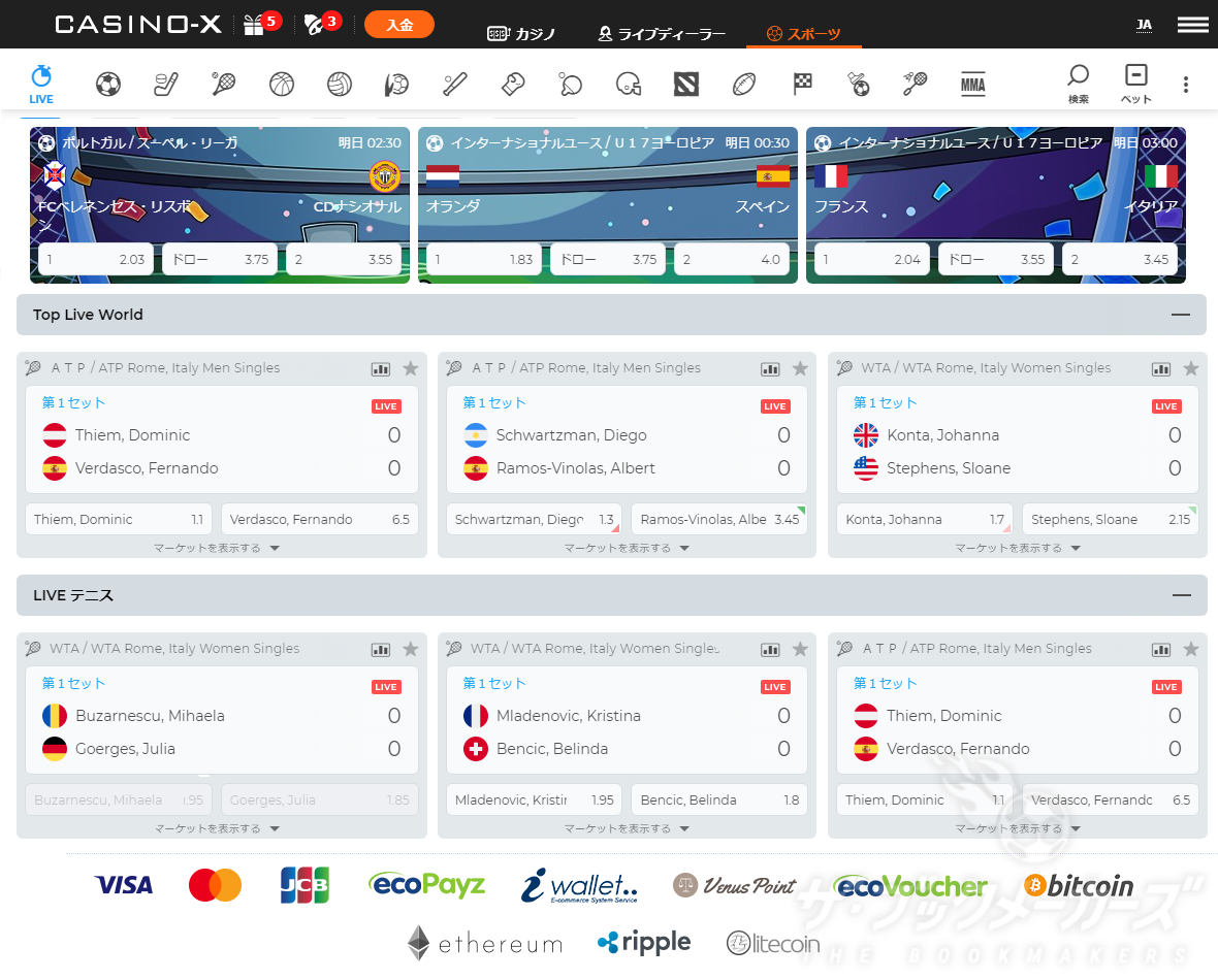 入出金方法がとてもたくさんあり、Jリーグなどのライブ映像も豊富なカジノエックスをご紹介します!