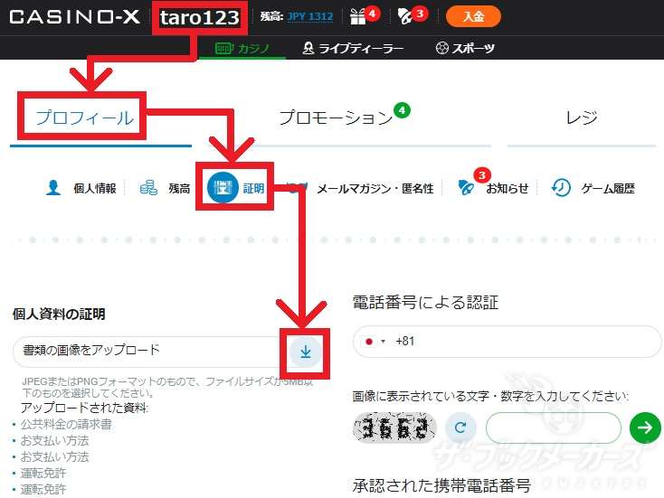カジノエックスでは以下の3種類の本人確認書類の提出が必要です。