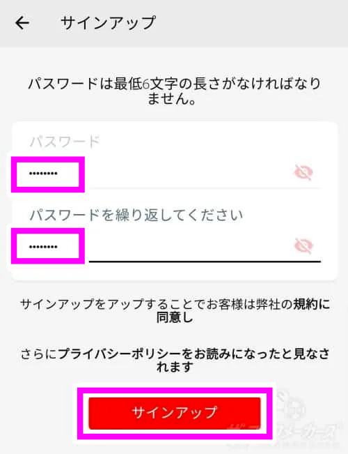 サインアップ用のパスワードを入力したら サインアップ へ進みます。